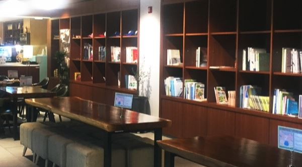 전시관에 들어선 후 왼쪽으로는 소파 형태의 오렌지색 의자가 창밖을 바라볼 수 있는 형태로 놓여있다. 4인 자리로 되어 있어서 홀로 독서나 작업을 위해 찾을 경우 간혹 다른 사람과 같이 자리를 공유하기도 하지만, 어색함은 없다. 간혹 어떤 이들은 따로 의자를 돌려 창밖을 보며 독서를 즐기기도 한다.