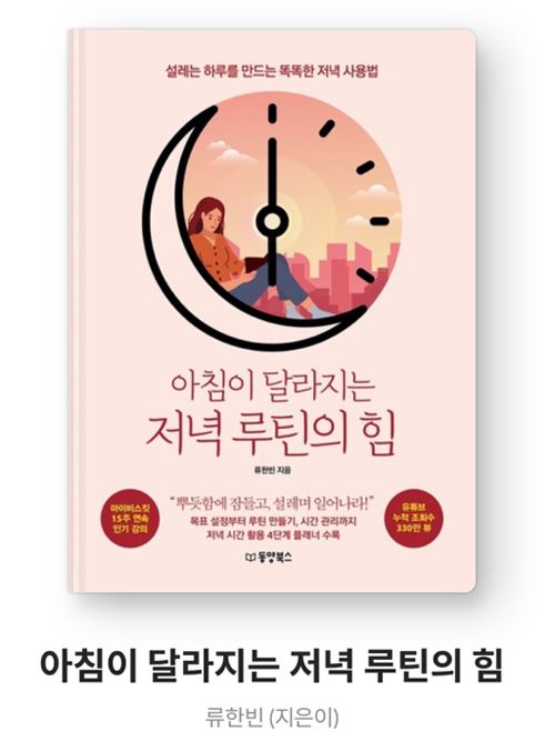동양북스에서 올해 1월 내놓은 자기계발서 ‘아침이 달라지는 저녁 루틴의 힘’을 추천하라고 하면 필자는 주저 없이 독서 플랫폼을 권하겠다. 부담 없이 술술 읽히지만 그 뿐, 언젠가 한 번 더 읽겠다고 다짐하며 책장에 꽂히지는 않는다.