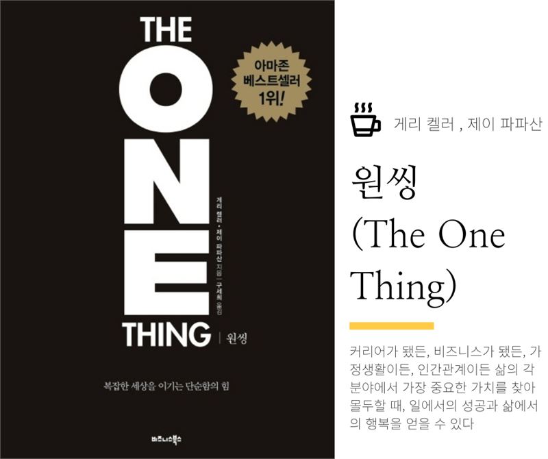 그런데 여기, 한 가지에 집중하는 것의 효과를 언급하는 책이 있다. 복잡한 세상을 이기기 위해서는 단순함이 더 큰 힘을 발휘한다고 주장하는 책 ‘원씽(The One Thinf)’dlek. 책은 전 세계에서 두 번째로 큰 투자개발 회사의 대표 게리 캘러가 집필했다.