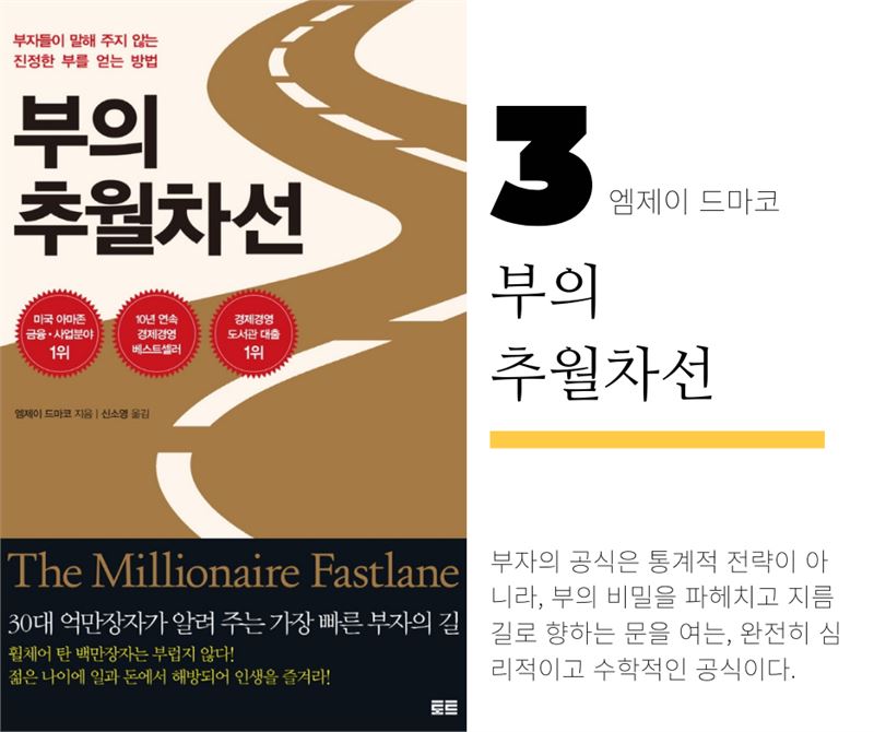 드마코가 역설하는 부자의 공식은 통계적 전략이 아니라, 부의 비밀을 파헤치고 지름길로 향하는 문을 여는, 완전히 심리적이고 수학적인 공식이다. 그는 “진짜 쓸모 있는 공식은 수학적으로 짜여 있을 뿐만 아니라 모호한 표현도 포함하지 않는다. 정말로 돈을 벌 수 있는 비밀, 수학적인 공식이 존재할까? 물론이다. 추월차선 이론이 그것이다”라고 말한다.