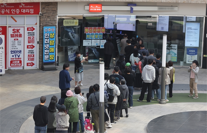29일 서울 시내 한 SKT 대리점에 시민들이 줄을 서서 교체를 기다리고 있다. (사진=연합뉴스)