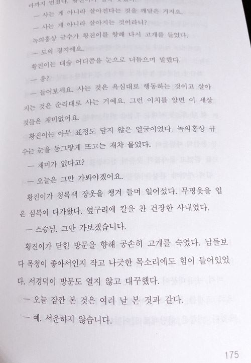 평온했던 유년과 달리 결혼과 함께 비극을 맞이하고 삶의 시련을 넘지 못한 채 죽음을 맞이해야 했던 ‘초희’ 속 허난설헌과 달리 ‘황진이’ 속 황진이는 좀 더 삶을 달관한 듯 보인다. 책 말미에는 세상의 어떤한 미혹에도 흔들릴 것 같지 않은 부처의 모습으로 거듭난 황진이가 잔잔하게 숲 속으로 사라져 가니 말이다.