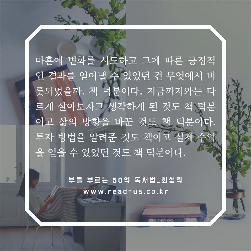 •독서난이도 ★★★☆☆ •추천지수 ★★★★☆ 왜 책을 읽으면 부자가 된다는 건지, 성공할 수 있다는 것인지 왜 자기계발서는 천편일률적인 것 같은지 다 똑같은 책 인 것 같을 때 어떻게 해야 하는지 왜 많은 책을 읽어야 하는지, 많은 책을 읽으면 어떤 변화가 생기는지 책 읽기에 대한 이 모든 질문에 시원한 답을 내어 줄 것 0 0 NewsHER(뉴스허) 자기계발부 박희린 기자 jinphrodite@gmail.com 자기계발부 박희린 기자의 기사 더보기 저작권자 ⓒ 뉴스허, 무단 전재 및 재배포 금지